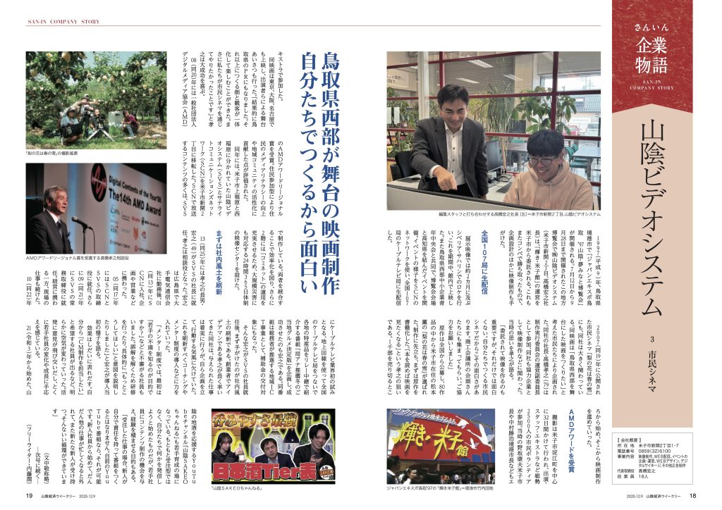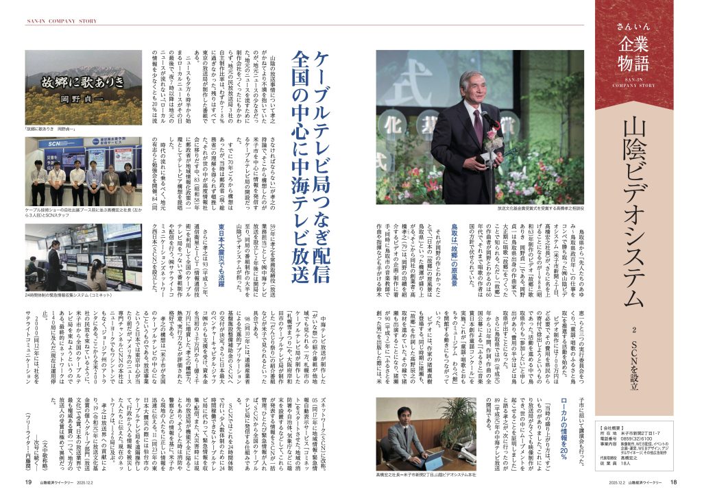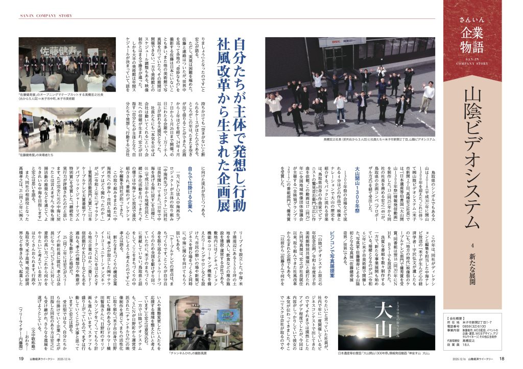 山陰中央新報社さまが刊行する経済週刊誌『山陰経済ウイークリー』の「さんいん企業物語」(①2025.12/1号 ②2025.12/2-12/8号 ③2025.12/9-12/15号 ④2025.12/16-12/31号)にて弊社をご紹介いただきました。ご覧いただけますと幸いです。